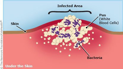 An abscess is a pocket of pus. Abscesses can form almost anywhere in or on your body. When you get an infection, your body's immune system kicks into action to try to fight it. White blood cells travel to the infected area and build up within the damaged tissue. This buildup leads to inflammation, which causes a pocket to form. The pocket fills with pus, creating an abscess. Pus is made up of living and dead white blood cells, germs, fluid and dead tissue.