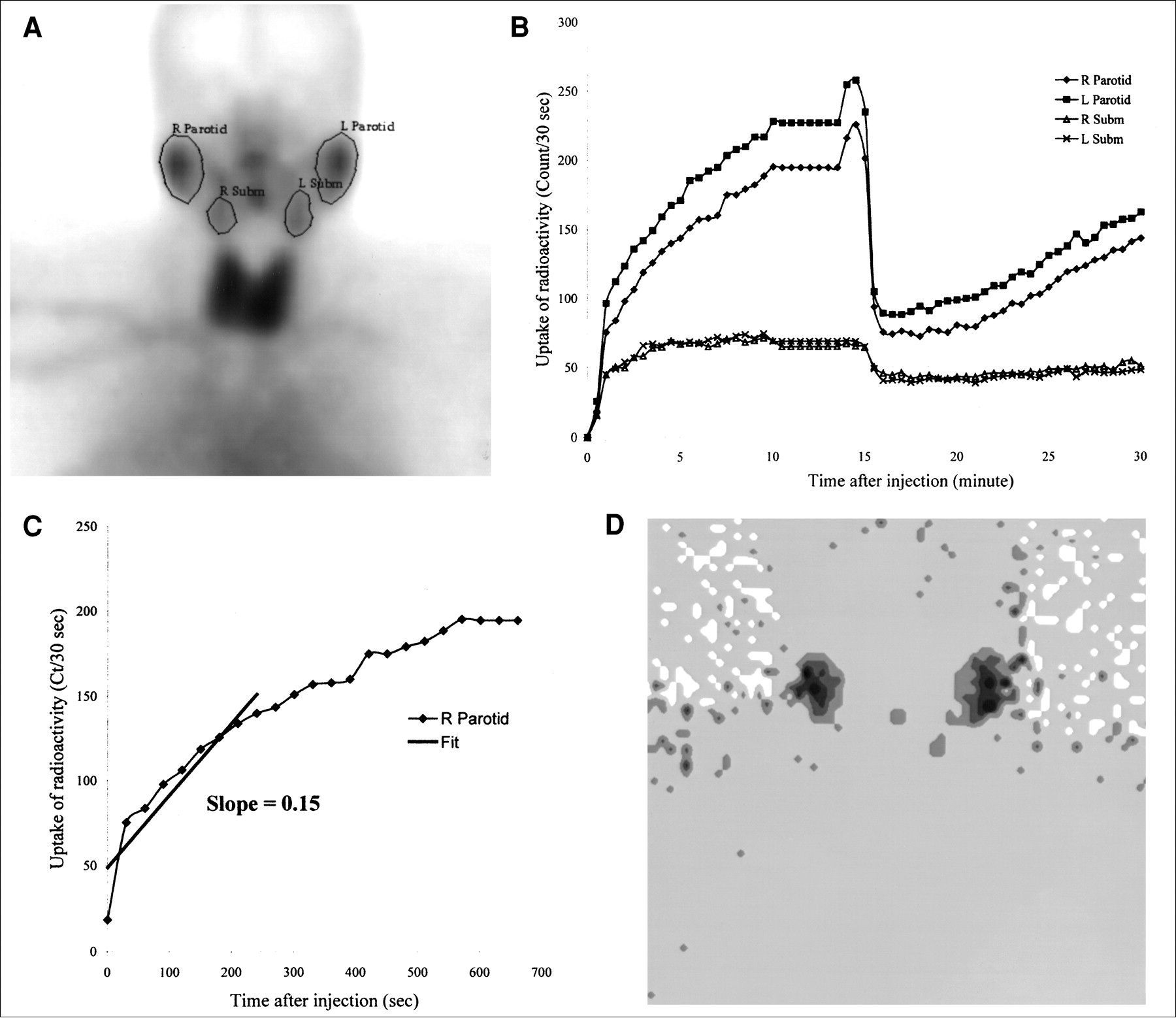 Salivary gland scintigraphy, through the administration of technethium-99 pertechnetate, is a nuclear medicine study that allows for functional evaluation of salivary glands by assessing the uptake and excretion characteristics of radiotracer by salivary glands following secretive stimulation.
