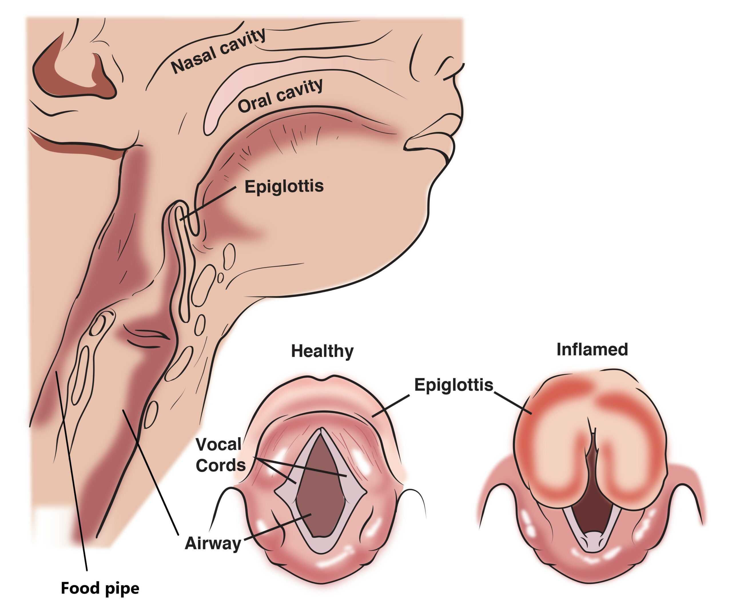 Epiglottitis is a medical emergency. If you or someone you know exhibits epiglottitis symptoms — such as difficulty breathing, difficulty swallowing, hoarseness or drooling — call 911 or head to your nearest emergency room. At the hospital, healthcare providers will begin epiglottitis treatment: The first step is to restore your airways to full capacity. Your healthcare provider will place an oxygen mask over your mouth and nose so your lungs can start getting air. If your air passages are already blocked, they’ll place a tube down your throat to deliver oxygen into your lungs. In severe cases, a person may need a tracheostomy (where your healthcare provider makes a small incision in your windpipe). Once your lungs are getting oxygen, your provider may insert a breathing tube through your nose and into your windpipe to make breathing more natural. Your medical team will give you plenty of fluids through an intravenous (IV) drip (a needle inserted into a vein). If you have a bacterial infection, they’ll give you antibiotics to help fight off infection.