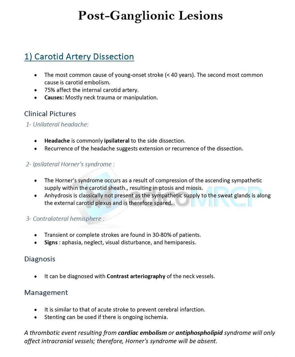 Here is a pictorial review of post- ganglionic lesions.