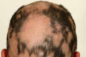 Common symptoms of alopecia areata include: Patches of hair loss, including your scalp, facial hair, eyebrows, eyelashes and body hair. Nail pitting. Your patches won’t typically have any other symptoms, but in rare cases, they may: Itch (pruritus). Change color (red, purple, brown or gray). Develop visible, mouth-like openings in your hair follicles (follicular ostia). Have black dots, which are hair shafts that are visible in the follicular ostia (cadaver hairs). Grow short hairs that are thicker on the top and narrow toward your scalp (exclamation point hairs). Grow white hairs.