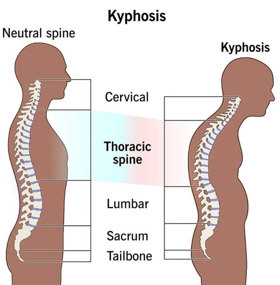 An increased front-to-back curve of the spine is called kyphosis. Kyphosis is an exaggerated, forward rounding of the upper back. In older people, kyphosis is often due to weakness in the spinal bones that causes them to compress or crack.