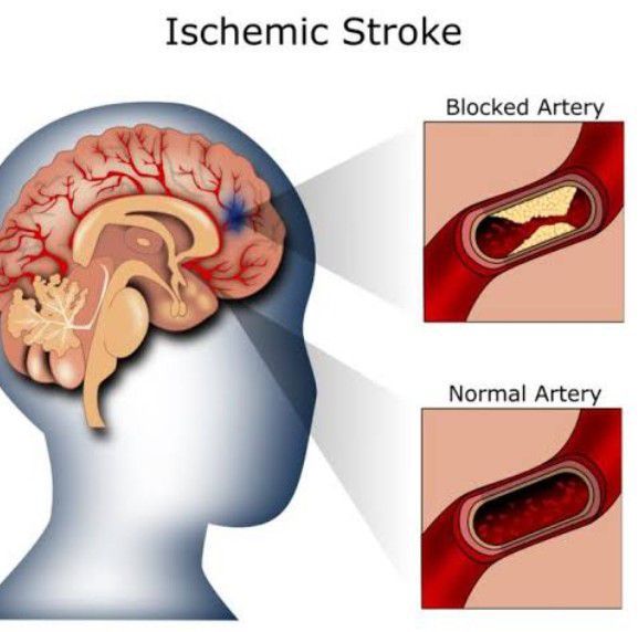 An ischemic stroke occurs when a blood clot, known as a thrombus, blocks or plugs an artery leading to the brain. A blood clot often forms in arteries damaged by a buildup of plaques, known as atherosclerosis. It can occur in the carotid artery of the neck as well as other arteries.