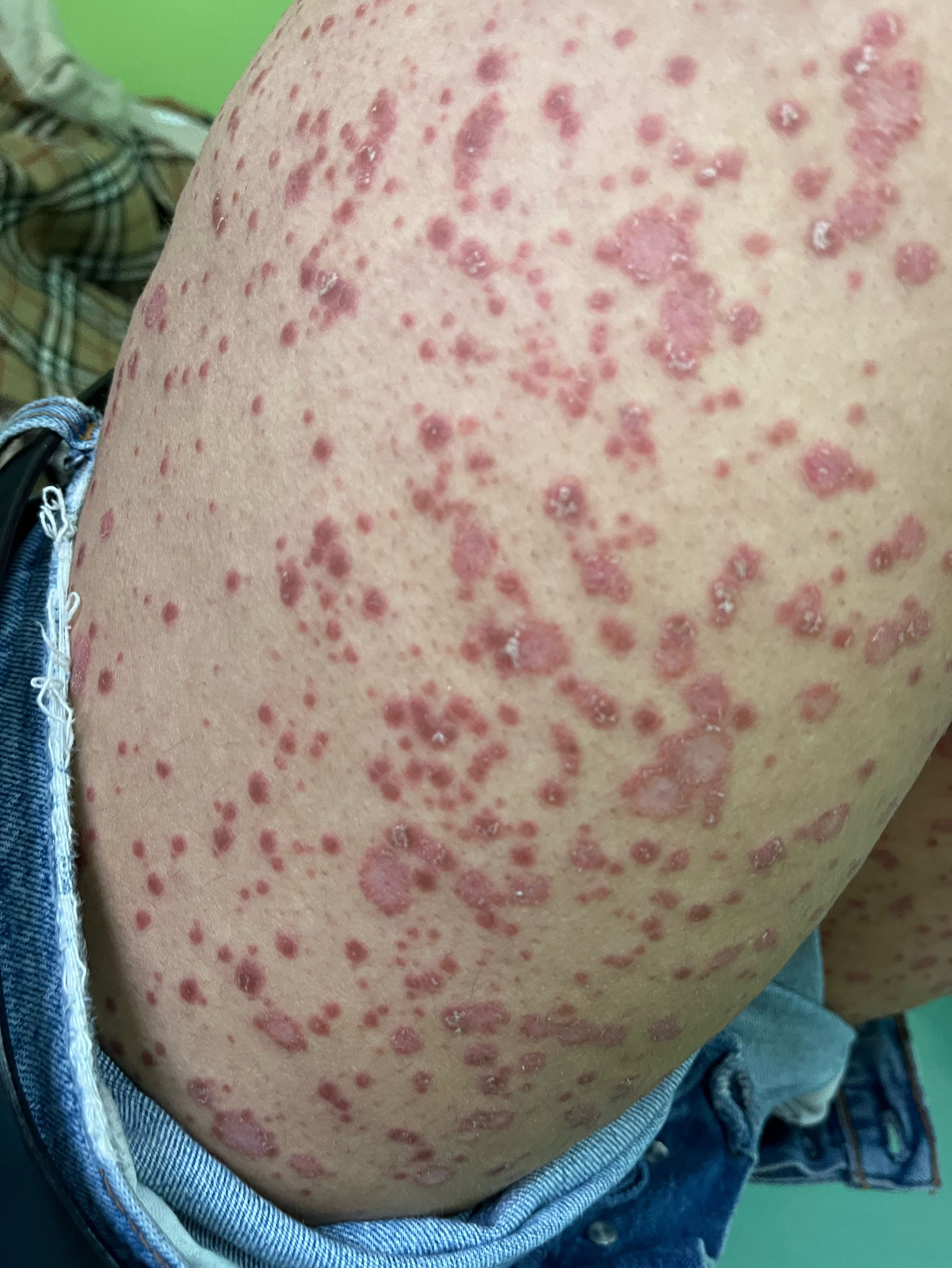 Sudden rash after 2 weeks of taking antibiotics. Diagnosis?