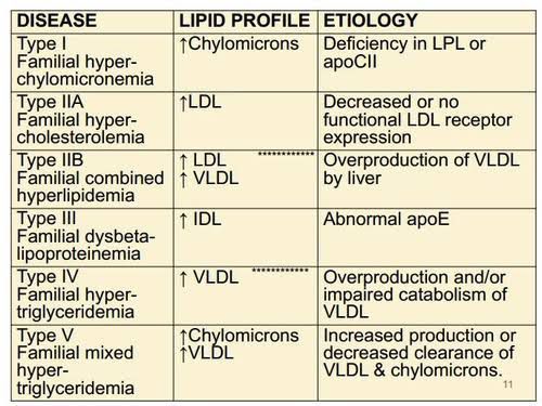 Familial Dyslipidemias types