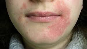 The primary symptom of perioral dermatitis is a red rash around your mouth. The rash may be scaly or dry and flaky. Often there are inflamed bumps that are called papules. Additionally, you may develop vesicles (clear fluid-filled bumps) or pustules (white fluid-filled bumps). Although it is usually found around the mouth, perioral dermatitis can also move to your eyelids, or around your eyes and nose. It can also appear on your genitals, scalp, ears, neck, extremities and trunk. The rash can cause an itching or burning sensation. Some people experience conjunctivitis (pink eye) when they have perioral dermatitis. If you have pink eye then your healthcare provider may refer you to an eye doctor (an ophthalmologist).