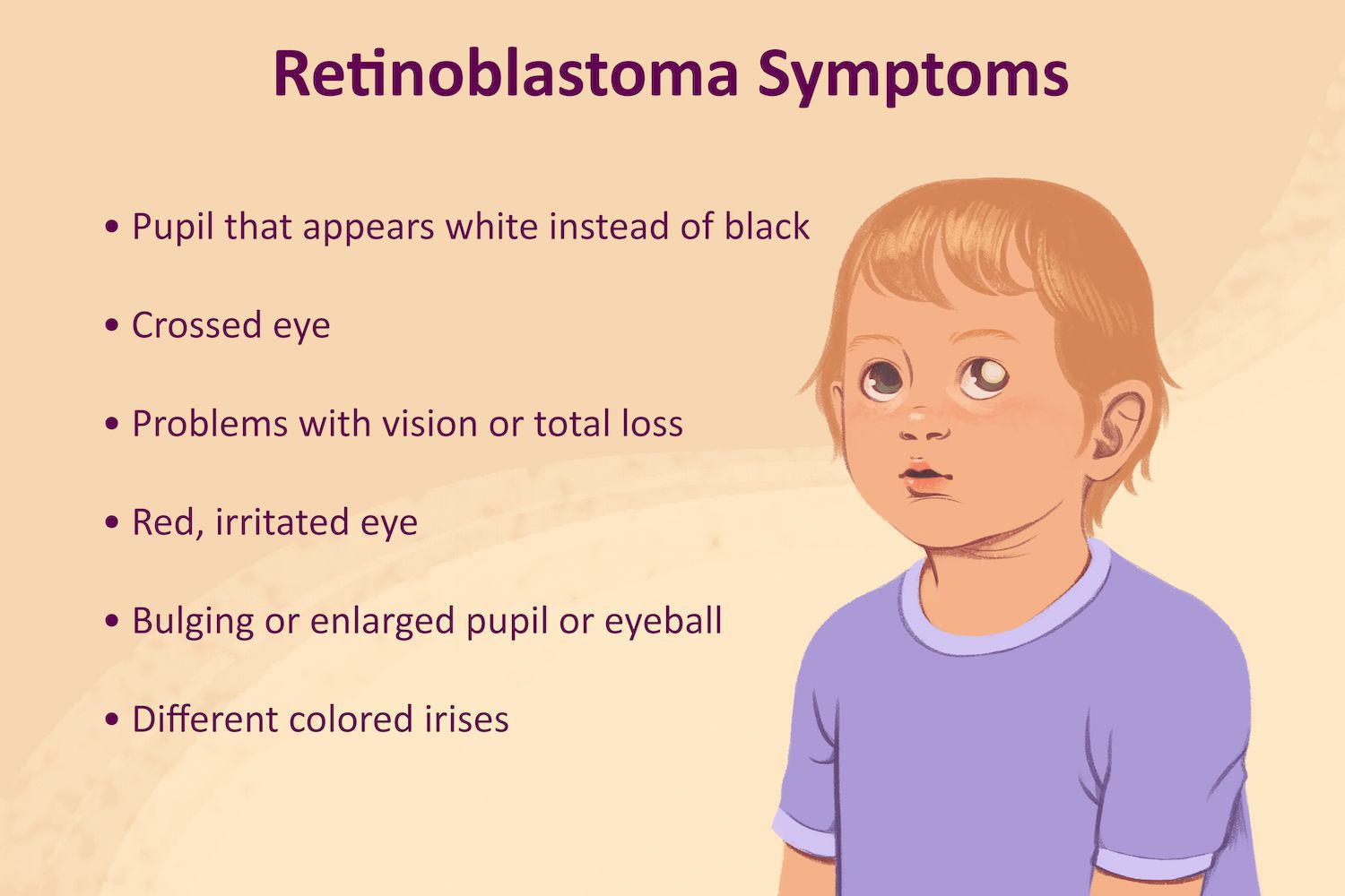 two common signs that parents first notice in their child are that: they have a white glow or white reflection in the centre of their eye (pupil) - this is also known as leukocoria. their eyes are not looking in the same direction (a squint) - also known as strabismus.