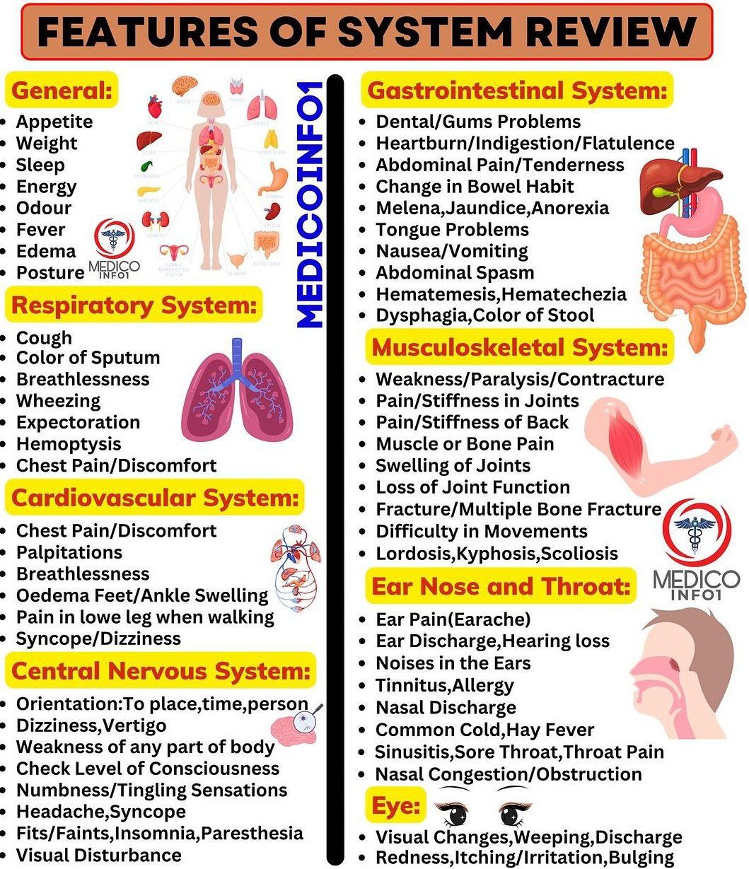Here is a comprehensive list of clinical features to review during clinical examination.