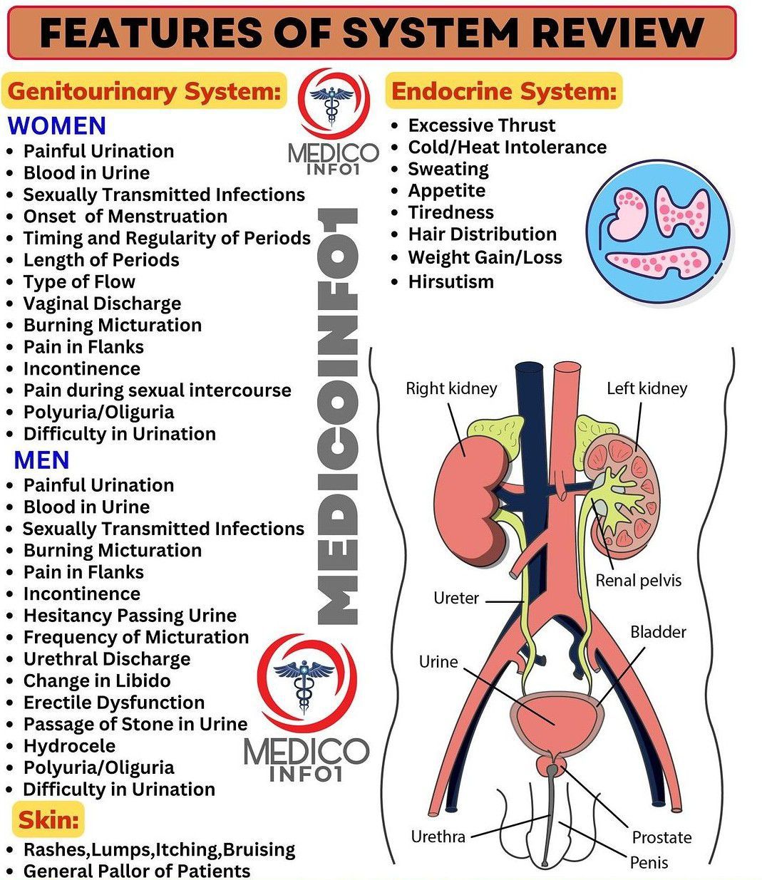 Here is a comprehensive list of clinical features to review during clinical examination.