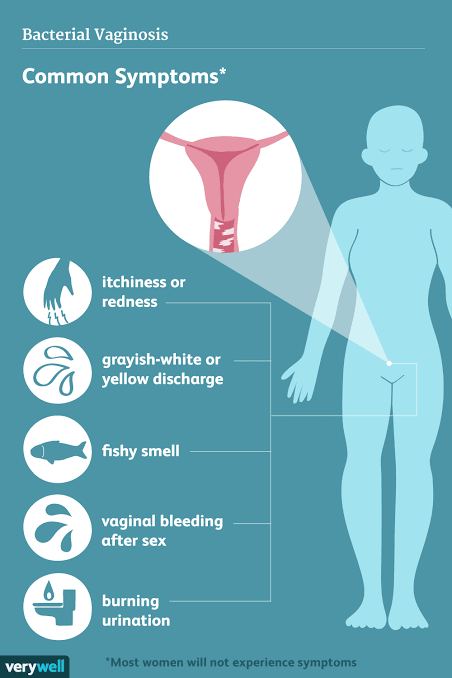 About half of the time, people with BV have no symptoms. But they can include: Pain, burning, or itching in the vagina Burning sensation when you pee Fishy smell that gets stronger after sex Thin white, gray, or green discharge