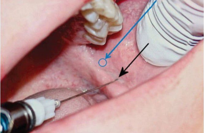 A picture to exactly show the spot for an effective IAN block. Inferior alveolar nerve block (IANB) is a technique of dental anesthesia, used to produce anesthesia of the mandibular teeth, gingivae of the mandible and lower lip. The conventional IANB is the most commonly used the nerve block technique for achieving local anesthesia for mandibular surgical procedures