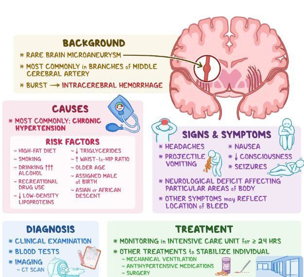 Charcot-Bouchard aneurysm is a rare brain microaneurysm, a bulge in the wall of a tiny (less than 300 micrometers in diameter) artery. It most frequently affects the lenticulostriate branches of the middle cerebral artery, which supply blood to the basal ganglia, thalamus, pons, and cerebellum in the brain