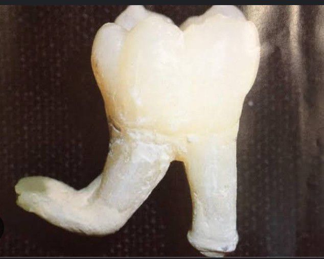 Dilaceration is defined as a deviation or bend in the linear relationship of a tooth crown to its root. Here its the mandibular 1st molar affected.