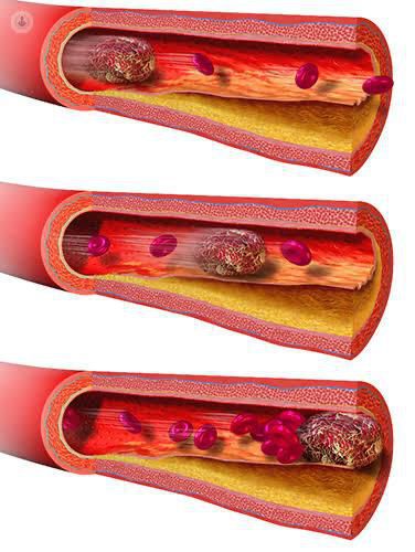 It usually happens when a blood clot in the deep veins in your leg breaks off and travels to your lungs. A blood clot that travels to another part of your body is called an embolus. When an embolus blocks a blood vessel it's called an embolism