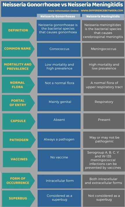 Gonococci Vs meningococci