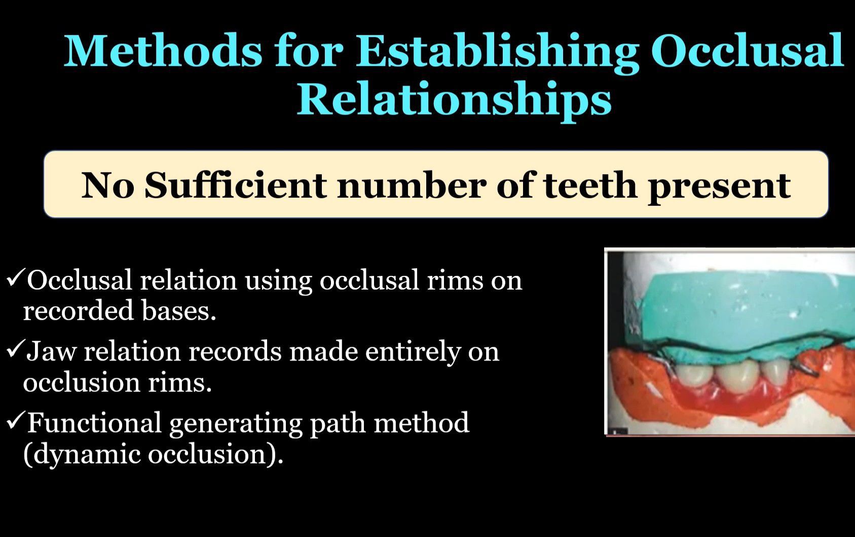 Here are three ways to establish occlusal relationships when insufficient teeth are present in RPD.
