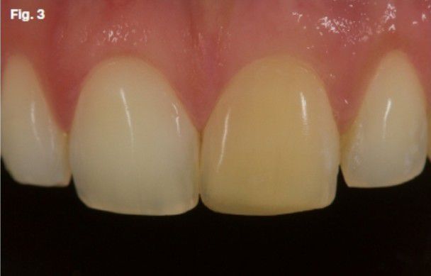 Calcific metamorphosis (CM) is seen commonly in the dental pulp after traumatic tooth injuries and is recognized clinically as early as 3 months after injury. Calcific metamorphosis is characterized by deposition of hard tissue within the root canal space and yellow discoloration of the clinical crown.