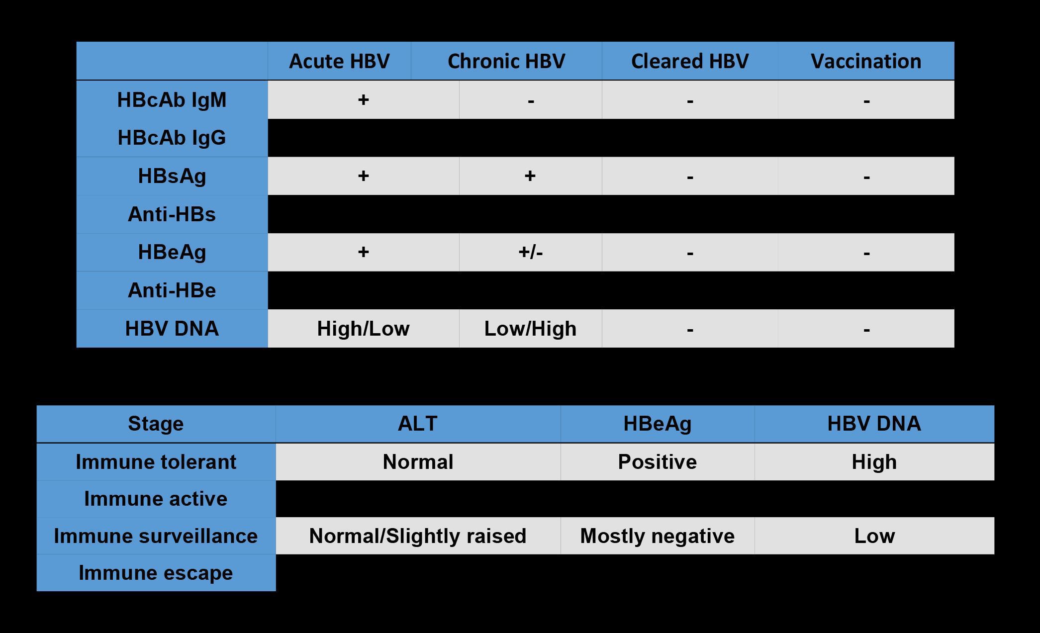 Serological markers of HBV
