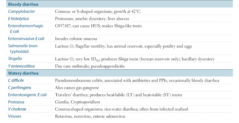 Organisms causing diarrhea