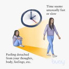 Symptoms of depersonalization include: Feelings that you're seeing your thoughts, feelings, or body or parts of your body from the outside. ... Feeling like a robot or that you're not in control of what you say or how you move. The sense that your body, legs or arms appear twisted or like they're not the right shape.