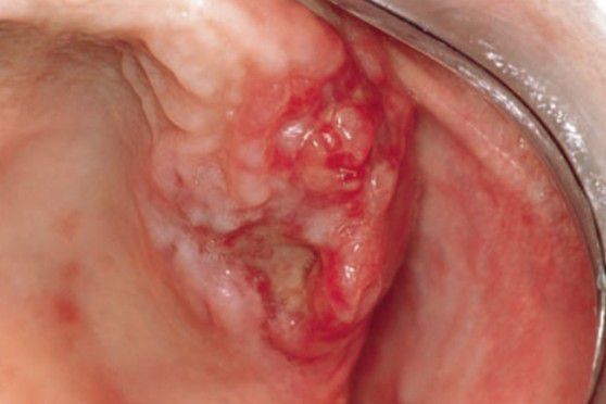 Oral manifestations that usually follow implantation of M. tuberculosis from infected sputum may appear on any mucosal surface. The tongue and the palate are favored locations.The typical lesion is an indurated,chronic, nonhealing ulcer that is usually painful. Bony involvement of the maxilla and mandible may produce tuberculous osteomyelitis