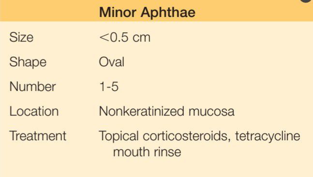 Clinical features of minor aphthous ulcers.