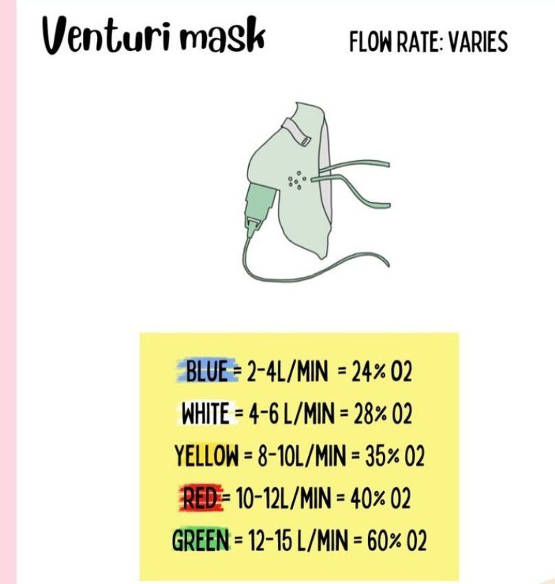 The venturi mask, also known as an air-entrainment mask, is a medical device to deliver a known oxygen concentration to patients on controlled oxygen therapy.