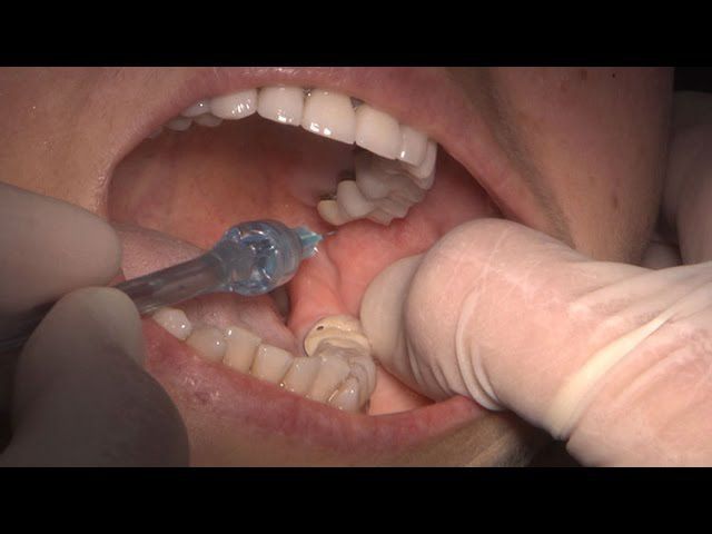 A VARIATION OF THE INFERIOR ALVEOLAR NERVE BLOCK IT ANESTHETIZES THE FOLLOWING NERVES: ● Inferior alveolar nerve (and its branches, the mental and incisive nerves) ● Mylohyoid nerve ● Lingual nerve ● Long buccal nerve (often) ● Auriculotemporal nerve (often) AREAS ANESTHETIZED: ● All mandibular teeth (inferior alveolar nerve) ● Epithelium of the anterior 2/3rds of the tongue (lingual nerve) ● All lingual gingiva and lingual mucosa (lingual nerve) ● All buccal gingiva and mucosa (long buccal and mental nerves) ● Skin of the lower lip (mental nerve) ● Skin along the temple, anterior to the ear, and posterior part of the cheek (auriculotemporal and buccal nerves) STEPS: ● The mouth is opened as wide as possible ● Insert the needle high into the mucosa at the level of the 2nd maxillary molar just distal to the mesiolingual cusp● Use the intertragic notch as an extraoral landmark to help reach the neck of the mandibular condyle ● Advance the needle in a plane from the corner of the mouth to the intertragic notch from the contralateral premolars (this position varies in accordance with individual flare of the mandible) until it contacts the condylar neck ● Withdraw the needle slightly and perform aspiration to observe whether the needle is in a blood vessel ● After a negative result on aspiration, slowly inject the anesthetic ● Have the patient keep the mouth open for a few minutes after injection, to allow the anesthetic to diffuse around the nerves