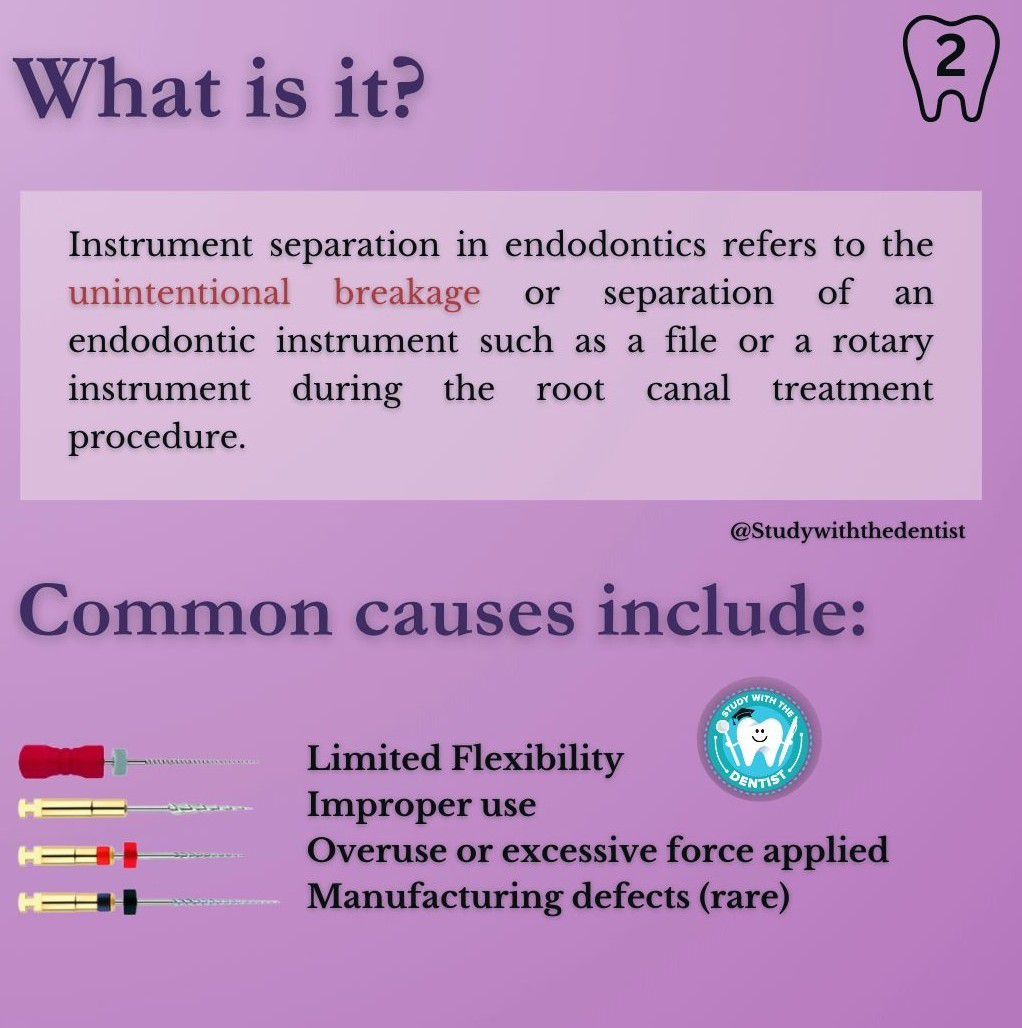 During cleaning & shaping in the root canal procedure, sometimes a file may break while filling in the root systems of a tooth. π¦·This can happen due to plenty of reasons such as, overuse of instrumentation, over rotation during using rotary files etc.