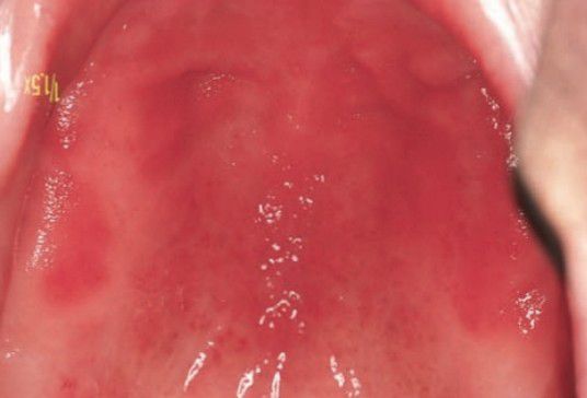 Wiping away the plaques or pseudomembranes with a gauze sponge leaves a painful erythematous, eroded, or ulcerated surface. Although lesions of thrush may develop at any location, favored sites include the buccal mucosa and mucobuccal folds, the oropharynx, and the lateral aspects of the tongue. In most instances in which the pseudomembrane has not been disturbed,associated symptoms are minimal. In severe cases,patients may complain of tenderness, burning, and dysphagia.