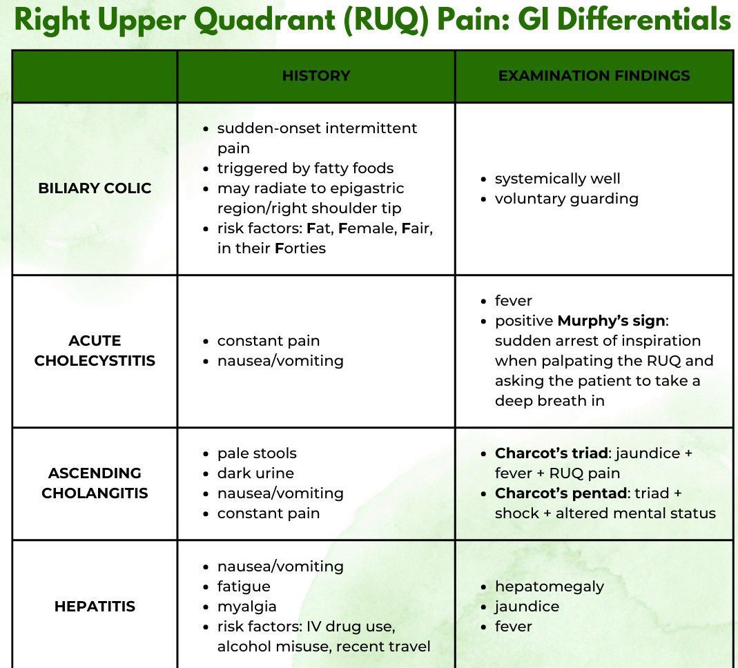 RUQ Pain Differentials