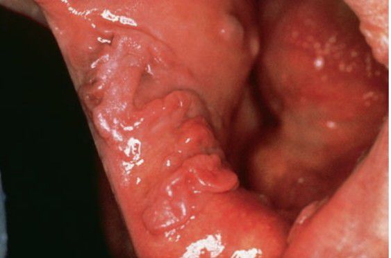 Condyloma acuminatum is an anogenital wart caused by HPV that may also involve the oral mucosa. Common to these sites is a warm, moist squamous epithelial surface.