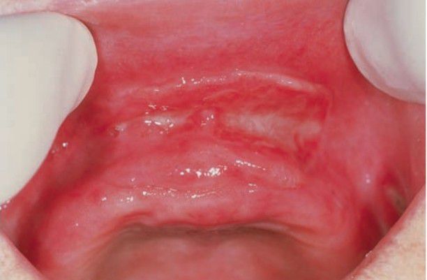 Denture-induced fibrous hyperplasia of oral mucosa is related to the chronic trauma produced by an ill-fitting denture. The process is essentially the same as the one that leads to traumatic fibroma, except that a denture is specifically identified as the causative age.