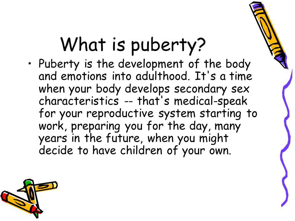 when your child’s body begins to develop and change as they transition into adulthood. It’s the time in your child’s life when they go through the physical changes to reach sexual maturity and are capable of reproduction. The stages of puberty follow a definite path with a progression of physical changes. The emotional changes of puberty may not progress at the same pace as the physical changes. Both the physical and emotional changes of puberty begin and end at different ages for each child. Puberty starts when a part of your child’s brain called the hypothalamus begins producing a hormone called gonadotropin-releasing hormone (GnRH). The hypothalamus sends GnRH to another part of the brain called the pituitary gland. GnRH stimulates the pituitary gland to release two more hormones — luteinizing hormone (LH) and follicle-stimulating hormone (FSH). These hormones travel to the sex organs (ovaries and testes), triggering them to begin releasing sex hormones (estrogen and testosterone). These messenger hormones cause the telltale signs of puberty to begin.