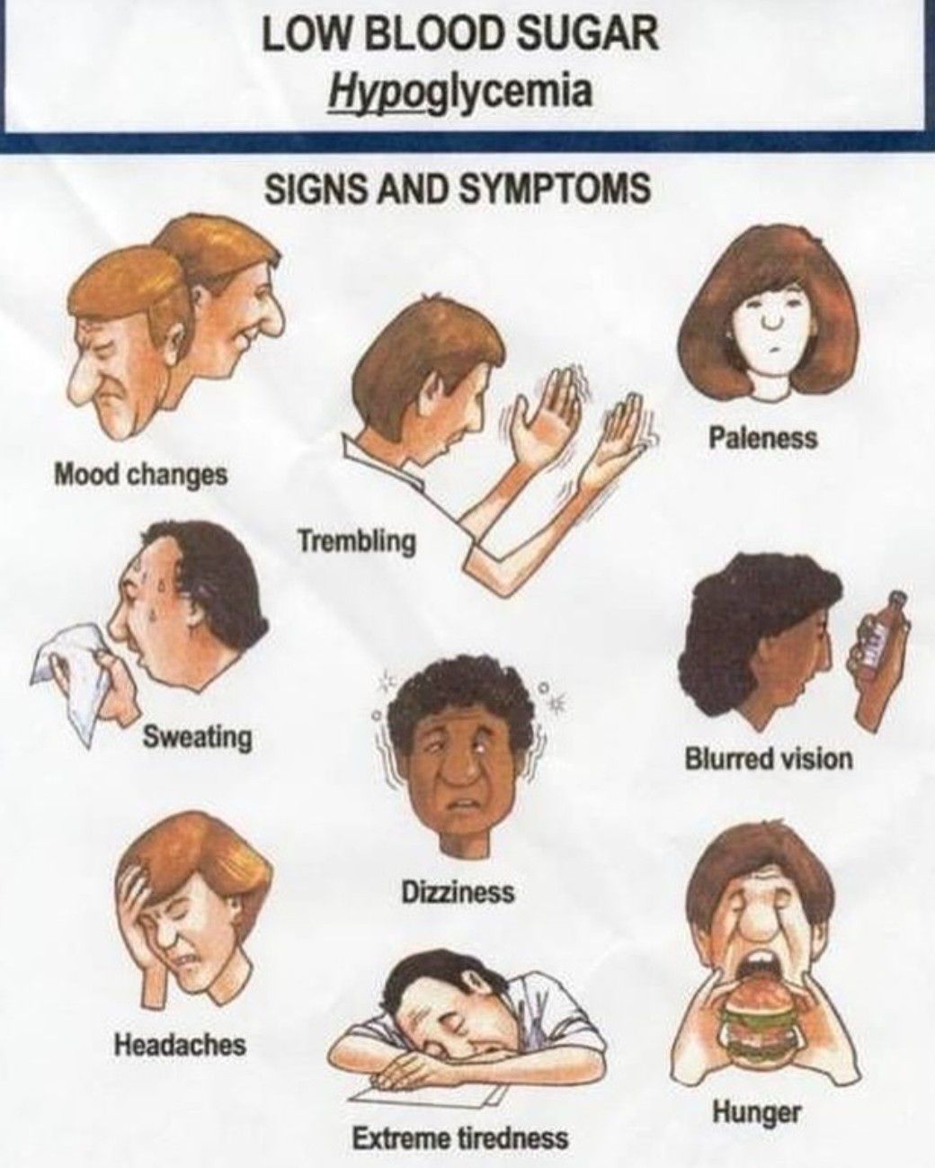 Signs and symptoms of hypoglycemia are shown here.