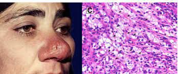 Symptoms include bleeding noses, nasal obstruction (or obstruction elsewhere in the respiratory tract), loss of the sense of smell, a hoarse voice, and thickening or numbing of the soft palate.