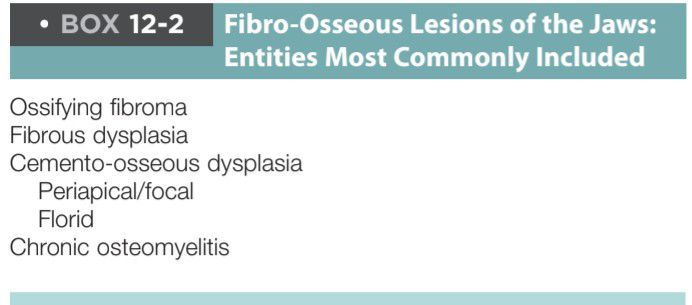 There are 4 diseases that fall under the category of fibro osseous lesions of jaws