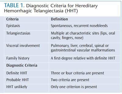 Diagnostic Criteria For Hereditary Hemorrhagic Telangiectasia