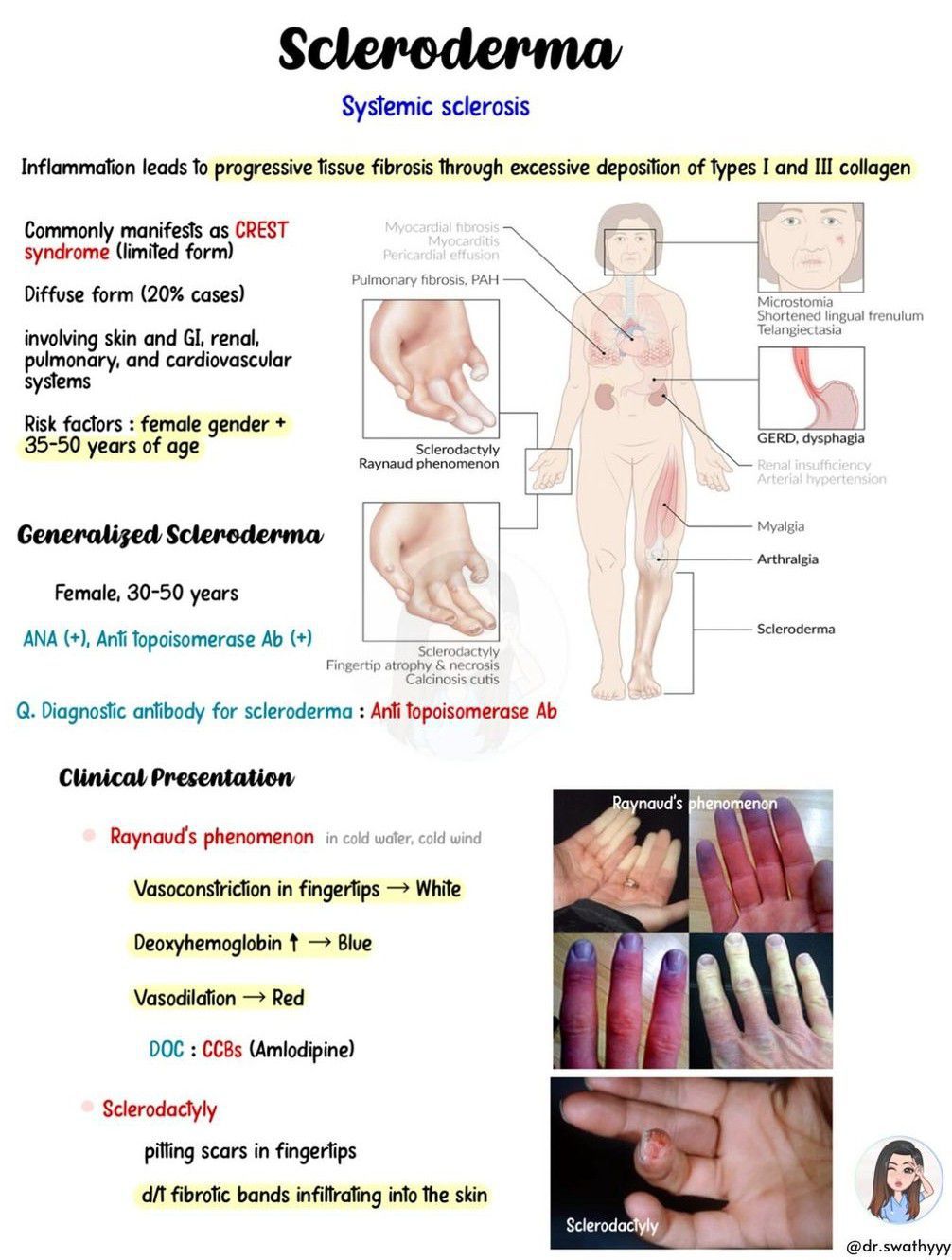 Scleroderma is an autoimmune disease that causes inflammation and fibrosis (thickening) in the skin and other areas of the body. When an immune response tricks tissues into thinking they are injured, it causes inflammation, and the body makes too much collagen, leading to scleroderma.