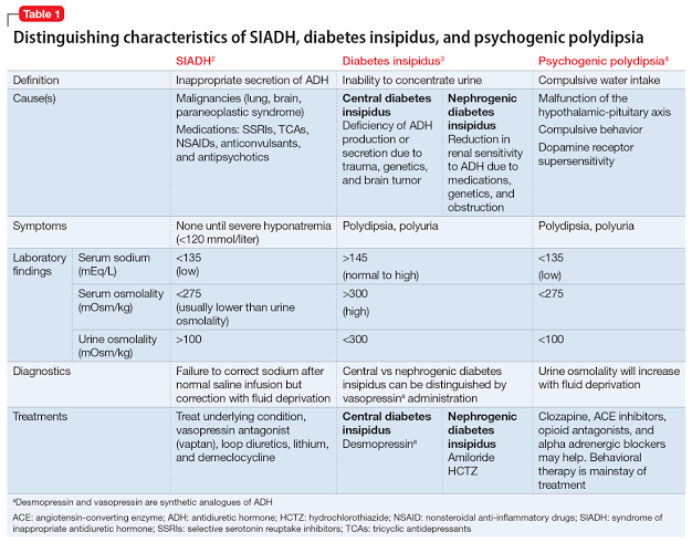 SIADH, Diabetes Insipidus and Psychogenic Polydipsia