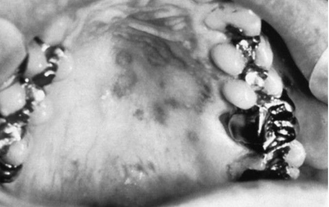 Unilateral palatal lesions of herpes zoster of the second division of trigeminal nerve.