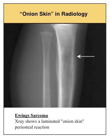 Characteristic feature of ewing sarcoma radiologically is inion skin appearance