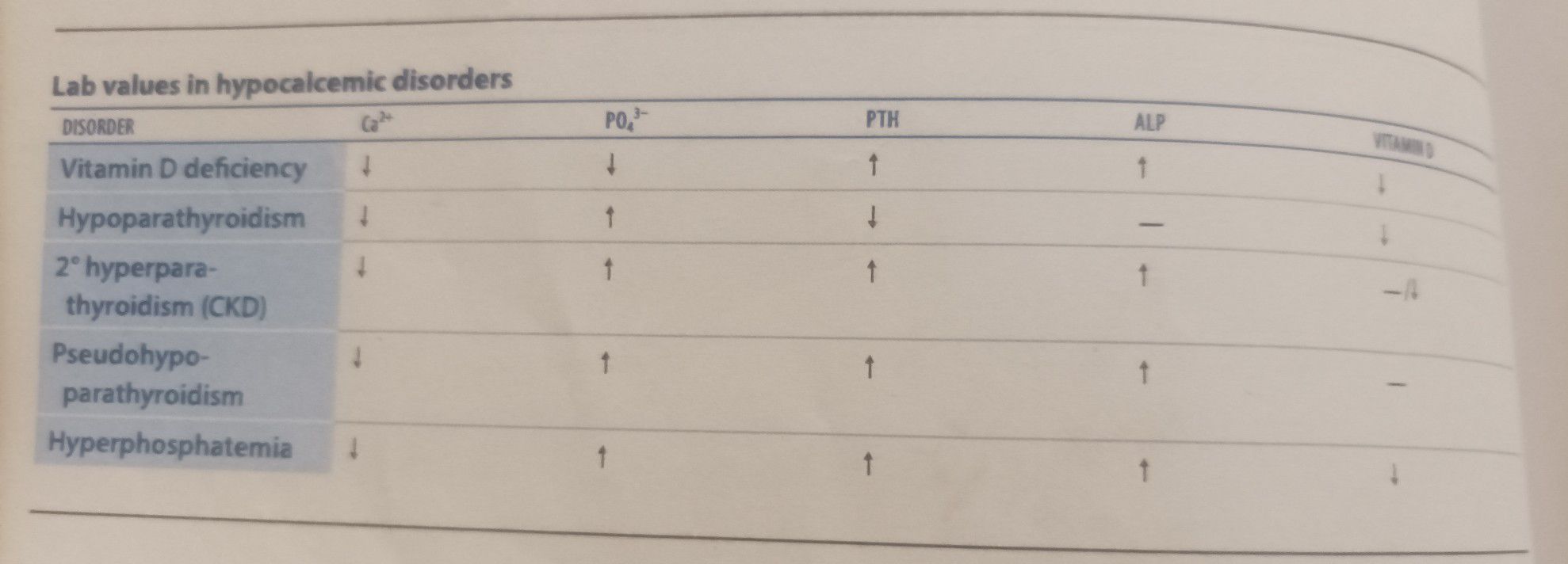 Lab values in hypocalcemic disorder