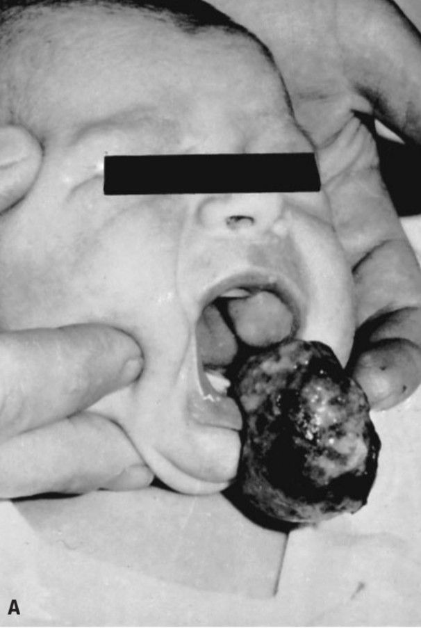 Congenital epulides arising from the upper and lower jaw of a 2- day-old infant.
