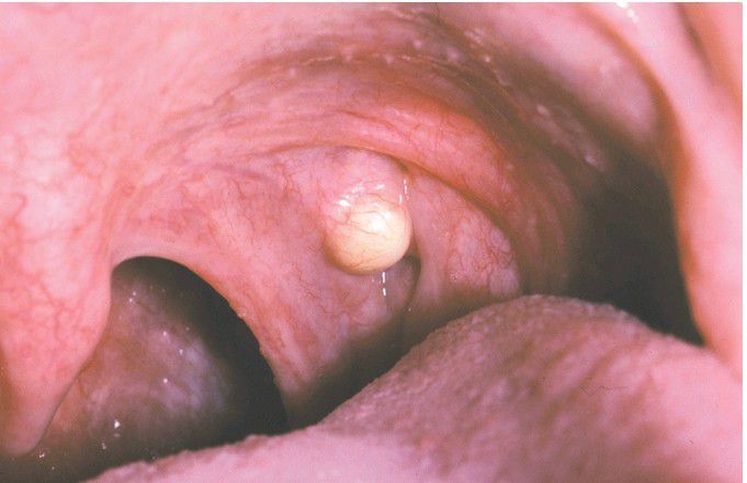 Oral Lymphoepithelial Cyst. Small yellow-white nodule of the tonsillar fossa