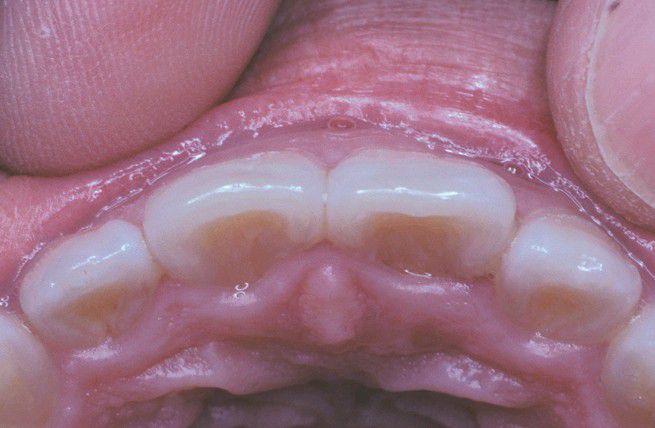Chinese patient exhibiting maxillary incisors with prominent lateral margins, which create a hollowed lingual surface.
