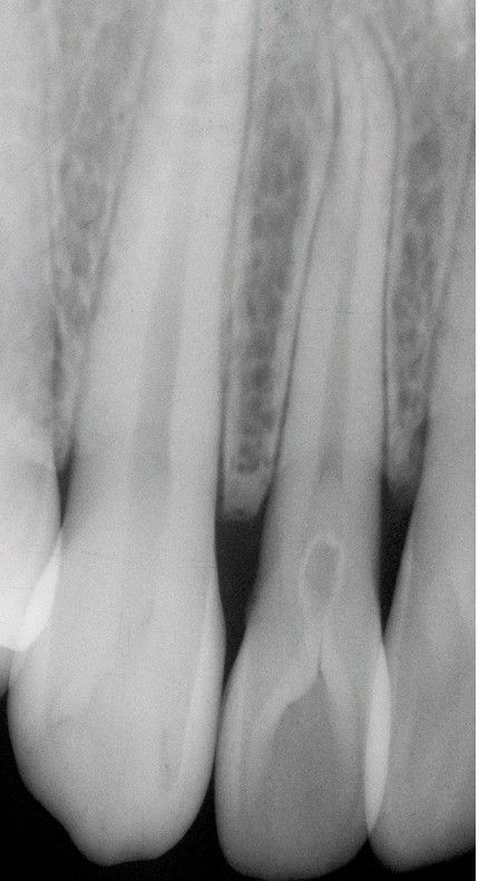 . Maxillary lateral incisor exhibiting invagination of the surface enamel that extends below the cementoenamel junction.