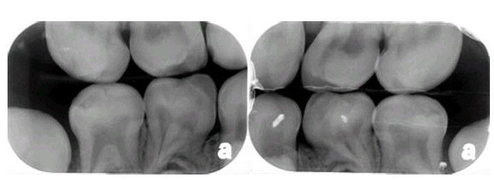 Globodontia. Bite-wing radiographs demonstrating posterior teeth with bulbous crowns and complex pulpal anatom