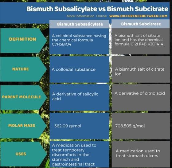 Bismuth subsalicylate Vs bismuth subcitrate