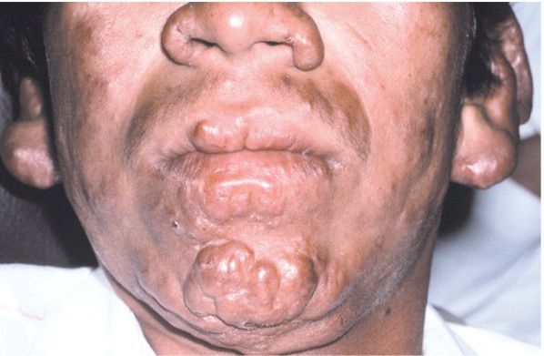 Numerous thickened facial nodule